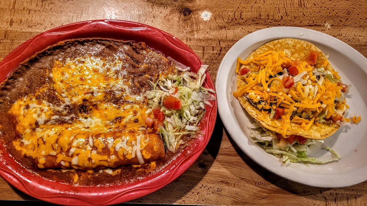 Cheese Enchiladas Rice and Beans and Taco Plate
